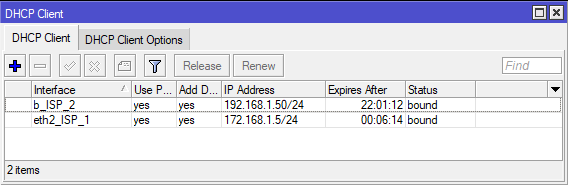 Najpierw musimy mieć 2 dostawców zakładce IP> DHCP Client