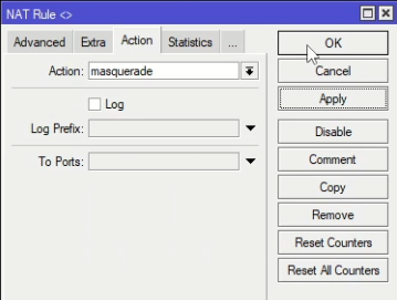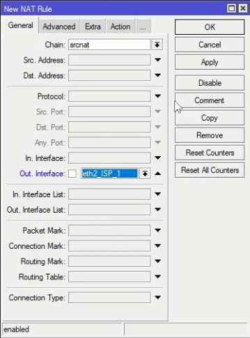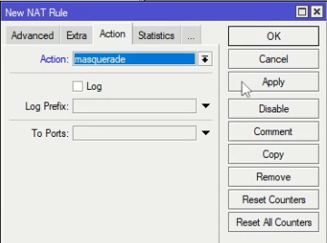 Jeśli nie mamy ustawionego NATa dla naszych dostawców, przechodzimy do zakładki IP > Firewall i dodajemy nową regułę