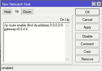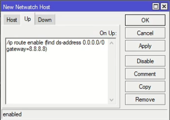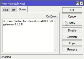 I jeśli dobrze rozumiem – jeśli odpowiada 8.8.8.8 to włącz routing zapasowy a jeśli nie działa to go wyłącz? Fajny artykuł z opisem netwatcha, ja kombinowałem skryptem niepotrzebnie.