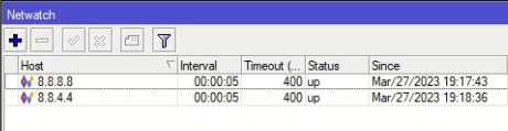 Cześć. Jesteś przekonany, że konfiguracja Netwatch’y jest poprawna? 1) Czy Netwatch będzie w stanie rozpoznać niedostępność danego adresu, skoro pójdzie drugim interfejsem? 2) Czy skrypty Down/Up nie są zamienione w stosunku do adresów hosta?