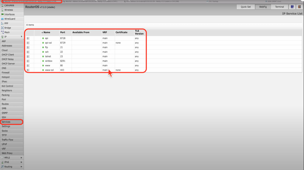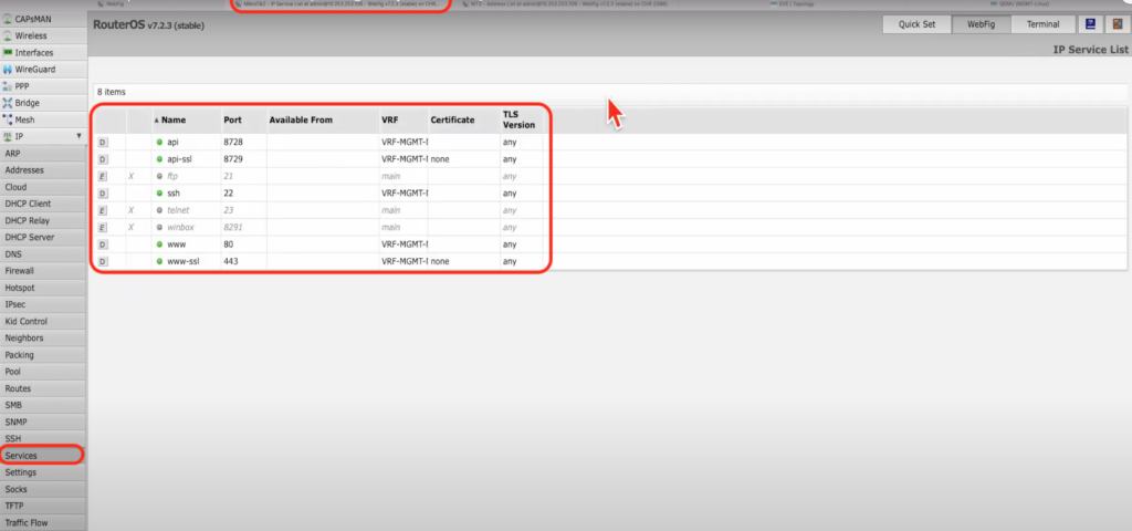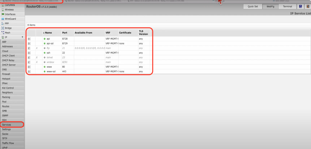 Przy okazji wyłączam nieużywany telnet, ftp i winbox.