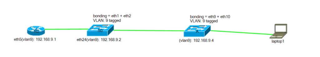 !!! UWAGA. Należy pamiętać aby porty, które będą dodawane do agregacji nie były w tym samym czasie podłączone w bridge’u. Jeżeli poprzez agregację przekazujemy informację o sieciach wirtualnych muszą one być dodane do interfejsu bonding na obu urządzeniach.