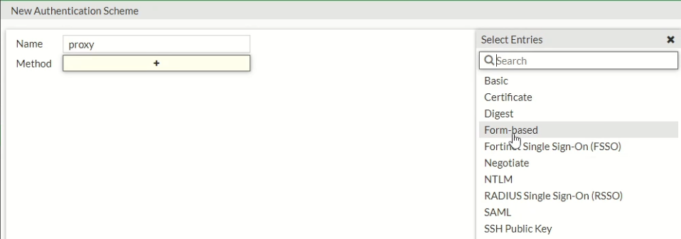 Method: wybieramy metodę z pośród listy. Form-based działa jak portal logowania, gdzie klient podaje login i hasło. Taką metodę wybiorę