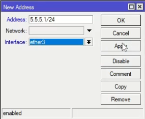 Przechodzimy do zakładki IP > Addresses i znakiem „+” dodajemy adres
