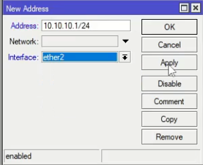 Po zalogowaniu do winboxa musimy nadać adresy na poszczególne interfejsy
