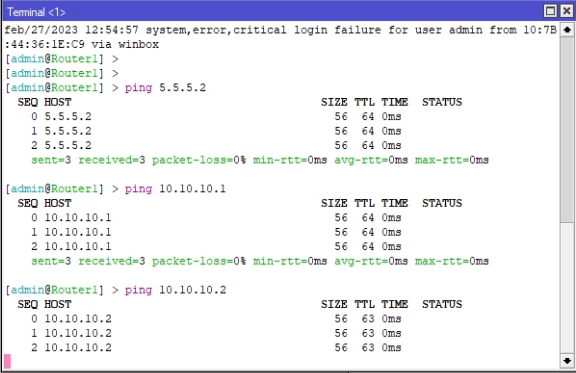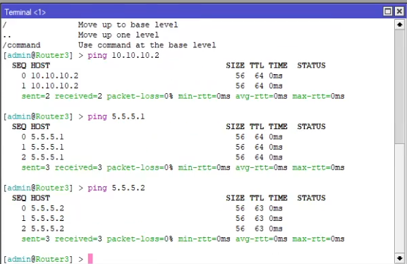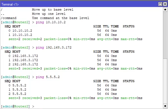 Test wykonamy za pomocą pingów, najpierw z każdego routera