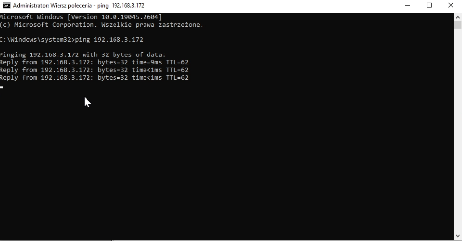 Komunikacja między routerami jest, teraz przetestujemy komputery