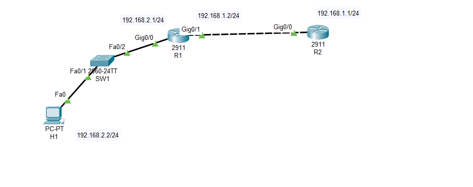 - Routery: R1 i R2