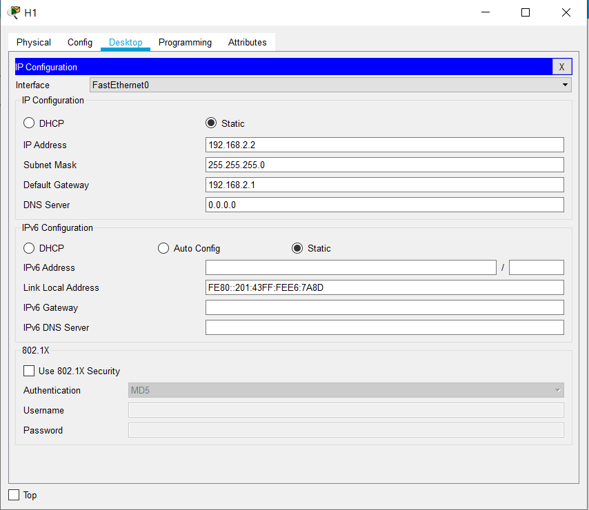- Konfiguracja adresów IP zgodnie z powyższą topologią