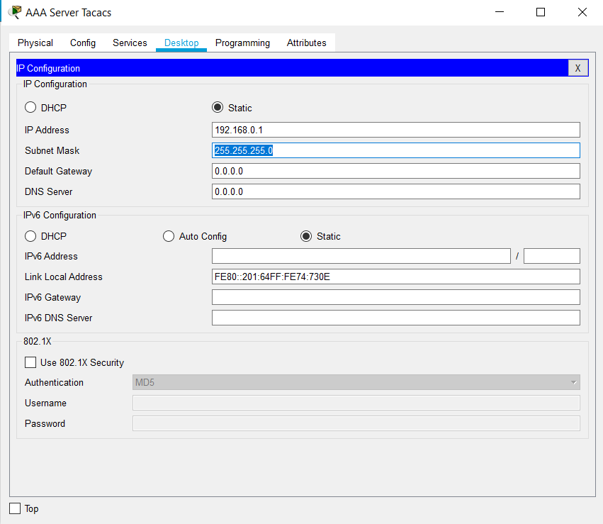 2. Konfiguracja na serwerze TACACS+  modelu AAA.