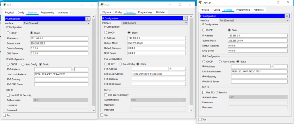 Switch(config-if)#ip address 192.168.0.2 255.255.255.0