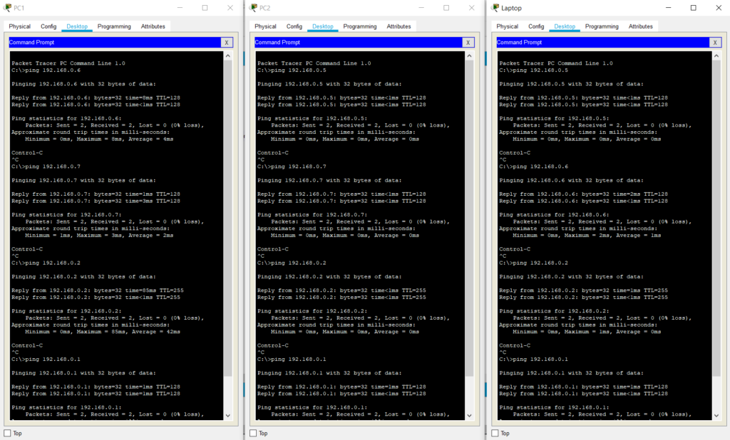 1. Prawidłowa komunikacja wszystkich urządzeń w VLAN1.