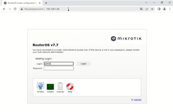 Gdy w wyszukiwarce podamy adres 192.168.1.40:80 wyświetli się strona konfiguracyjna routera