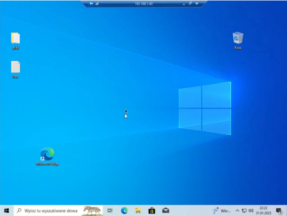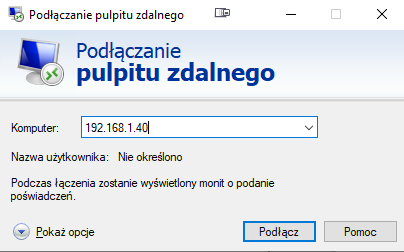 W polu wyszukiwania na pasku zadań wybieramy Podłączanie pulpitu zdalnego i wpisujemy adres publiczny routera.
