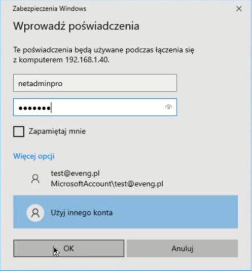 A dla połączenia RDP (Remote Desktop Pulpit), czyli pulpitu zdalnego reguła wygląda tak: